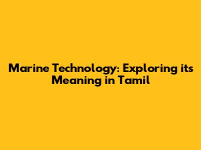 Marine Technology: Exploring Its Meaning In Tamil